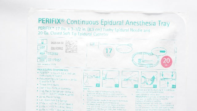 - Braun 332082 PERIFIX Continuous Epidural Anesthesia Tray 17Ga x 3-1/2inch (x)