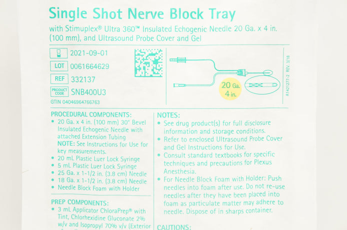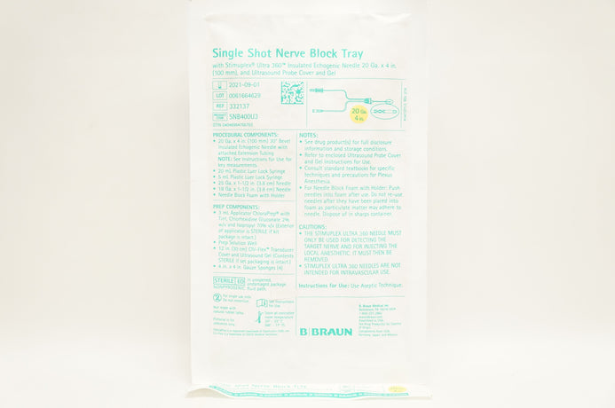 - Braun 332137 Single Shot Nerve Block Tray 20Ga x 4inch (x)