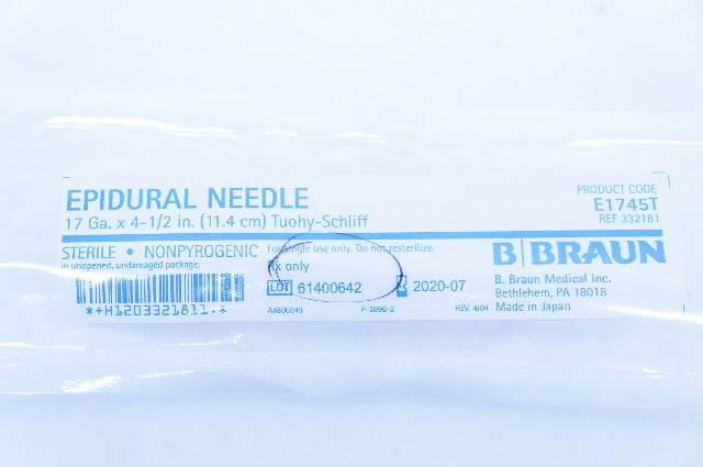 - Braun 332181 Epidural Ndle. 17Ga. x 4-1/2 inch Tuohy-Schliff (x)