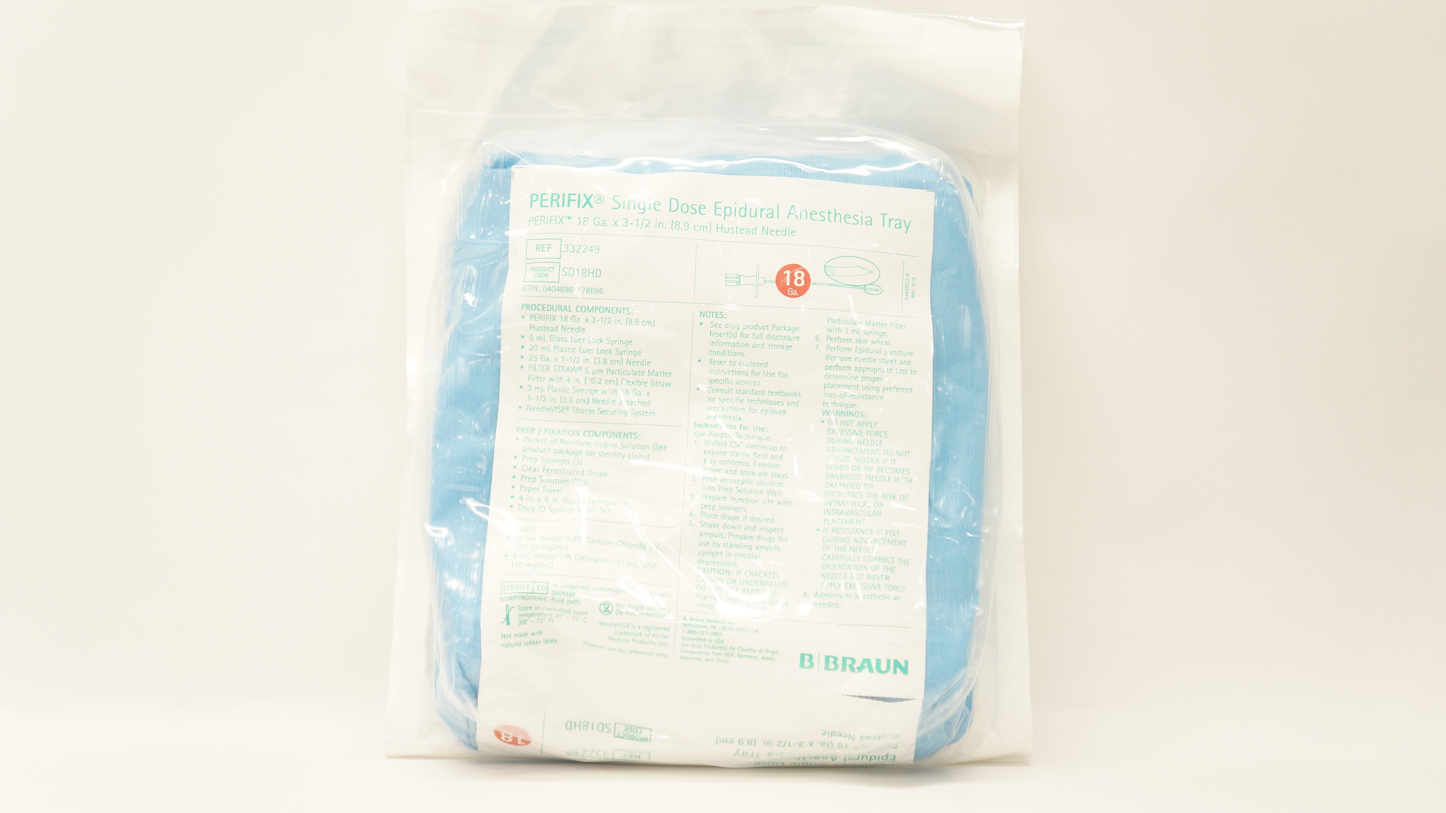 - Braun 332249 Perifix Epidural Anesthesia Tray 18Ga x 3 12inch Hustead Needle (x)