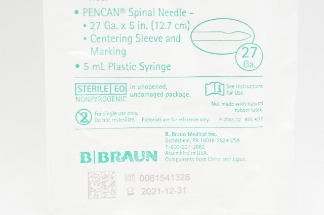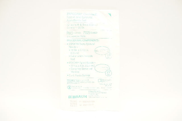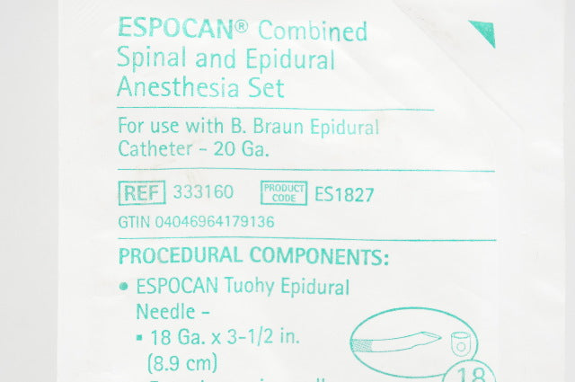 - Braun 333160 Espocan Combined Spinal and Epidural Anesthesia Set 18Ga x 27Ga