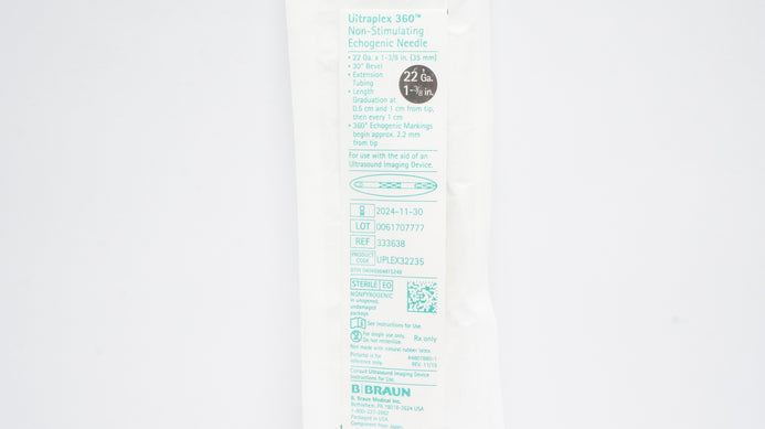 - Braun 333638 Ultraplex 360 Non-Stimulating Echogenic Needle 22Ga x 1-3/8In (x)