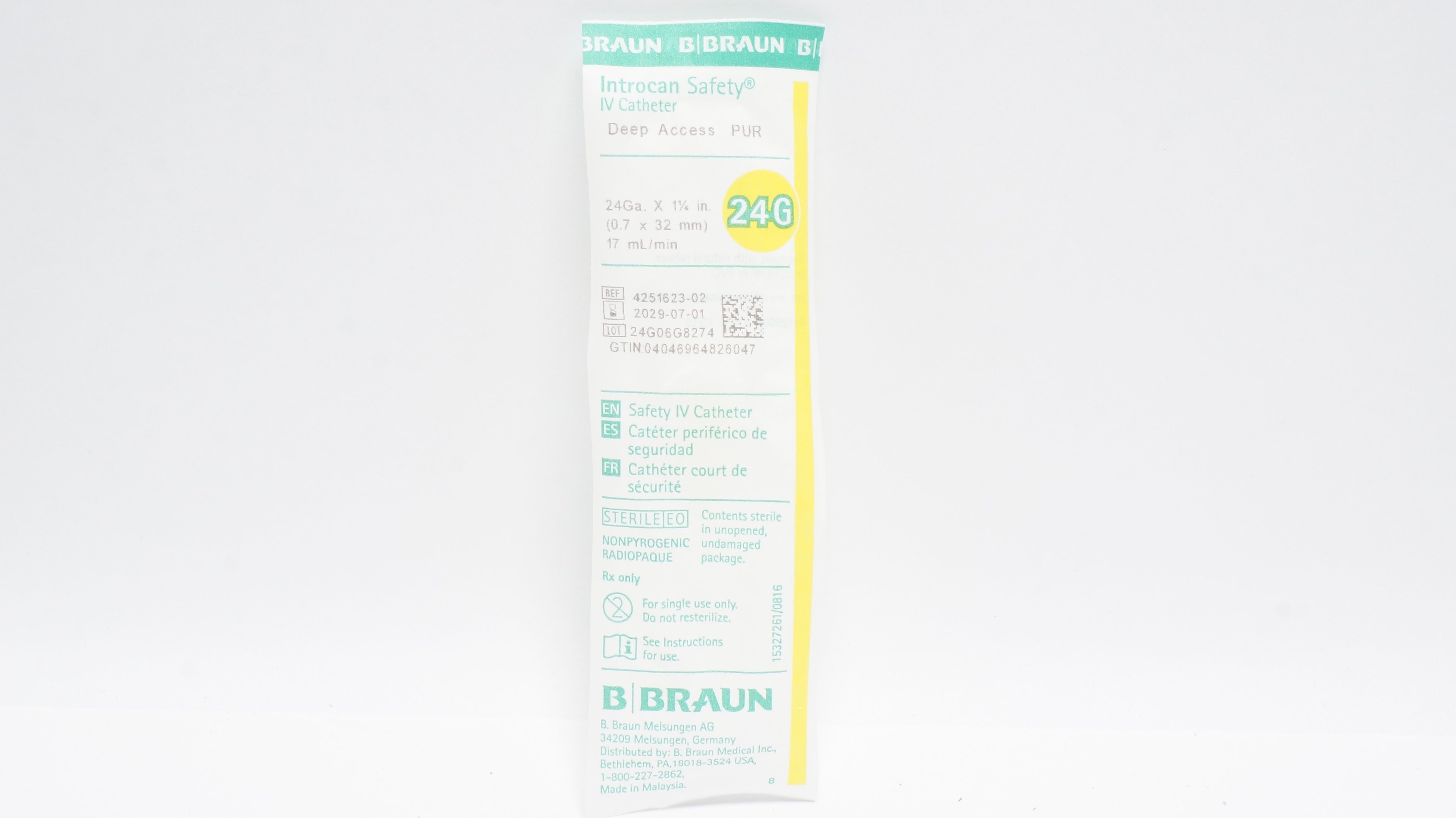 - Braun 4251623-02 Introcan Safety Deep Access IV Cath. 24Ga x 1 1/4In