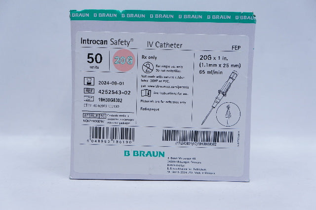 - Braun 4252543-02 Introcan Safety IV Cath. 20G x 1inch, 65ml - Box of 50