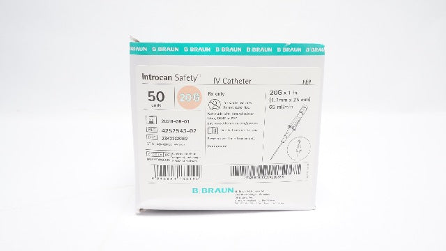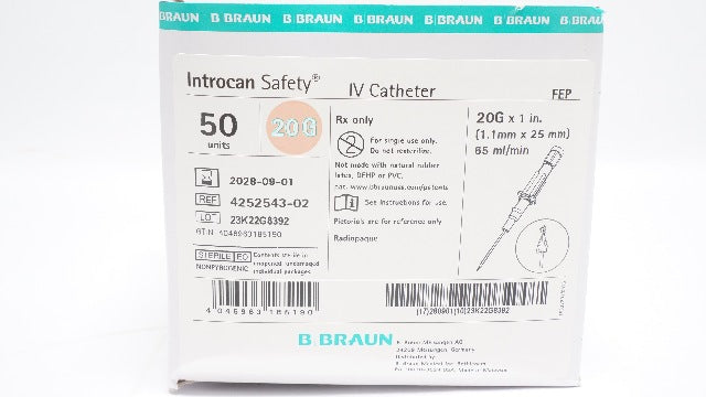 - Braun 4252543-02 Introcan Safety IV Cath. 20G x 1inch 65ml - Box of 50