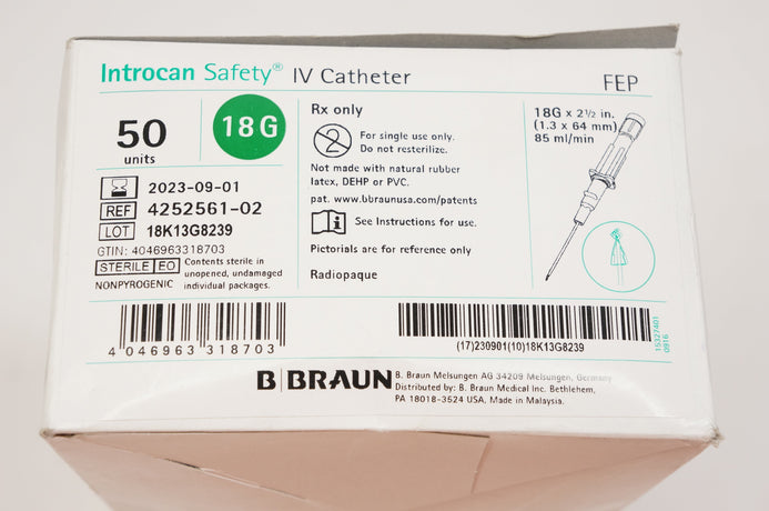 - Braun 4252561-02 Introcan Safety IV Cath. 18G x 2-1/2inch - Box of 50