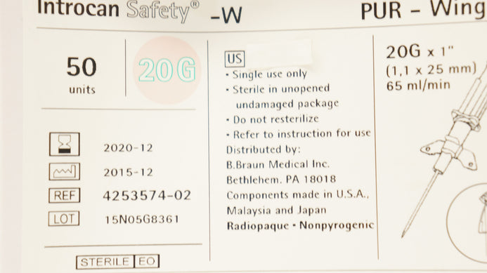 Braun 4253574-02 Introcan Safety IV Cath. PUR-Winged 20G x 1 inch, 65ml/min (x)