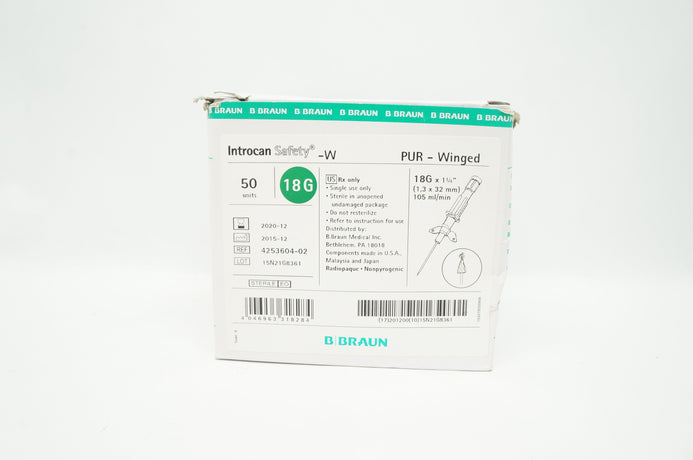 - Braun 4253604-02 Introcan Safety Safety PUR-Winged 18G x 1-1/4in (x) - Box of 23