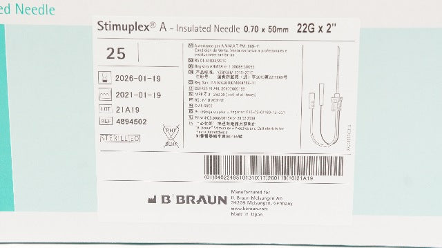 - Braun 4894502 Stimuplex A Insulated Needle 22G x 2inch - Box of 25