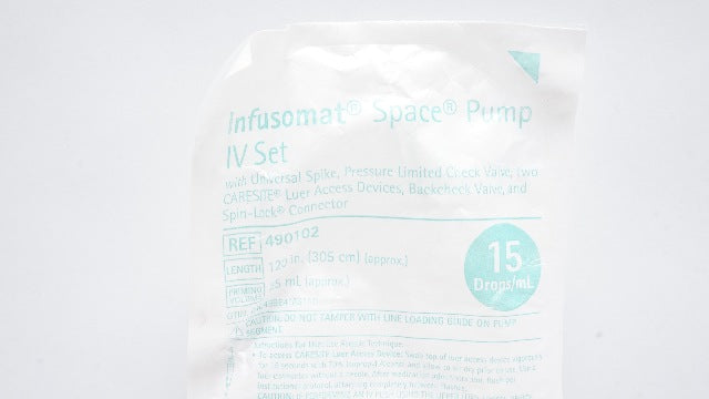 Braun 490102 Infusomat Space Pump IV Set 15Drops/mL 120inch x 25mL With Universal Spike, Pressure Limited Check Valve, Two Caresite Luer Access Devices, Backcheck Valve, And Spin-Lock Connector