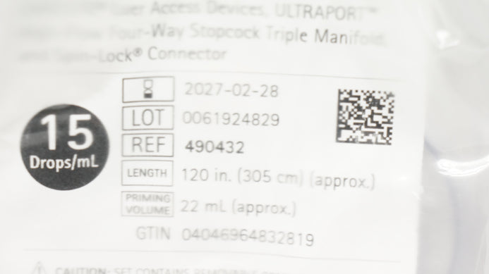 - Braun 490432 IV Gravity Administration Set 15 Drops/mL 120inch x 22mL