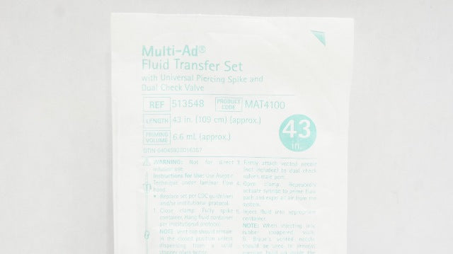 - Braun 513548 Multi-Ad Fluid Transfer Set w/Spike & Valve 43inch x 6.6mL(Approx.)