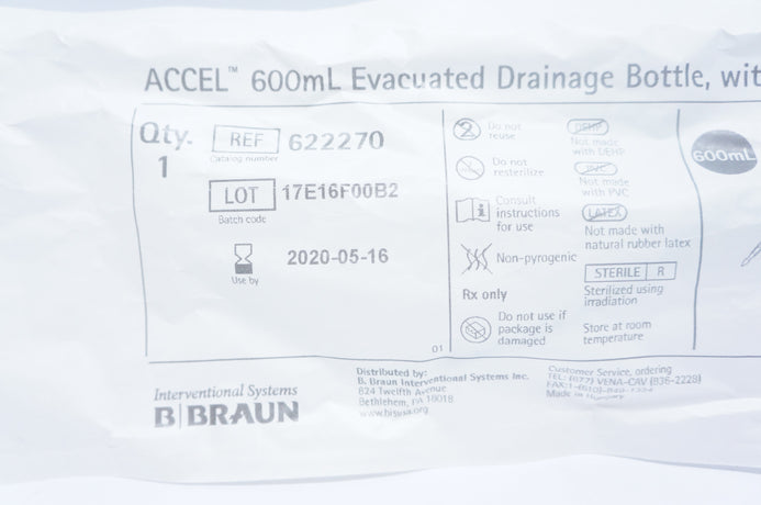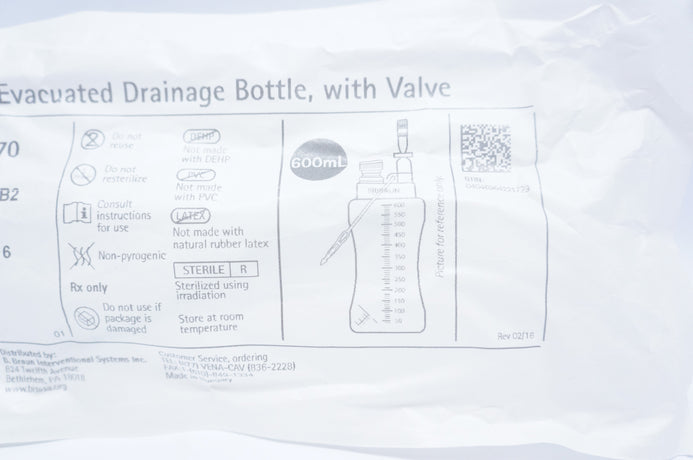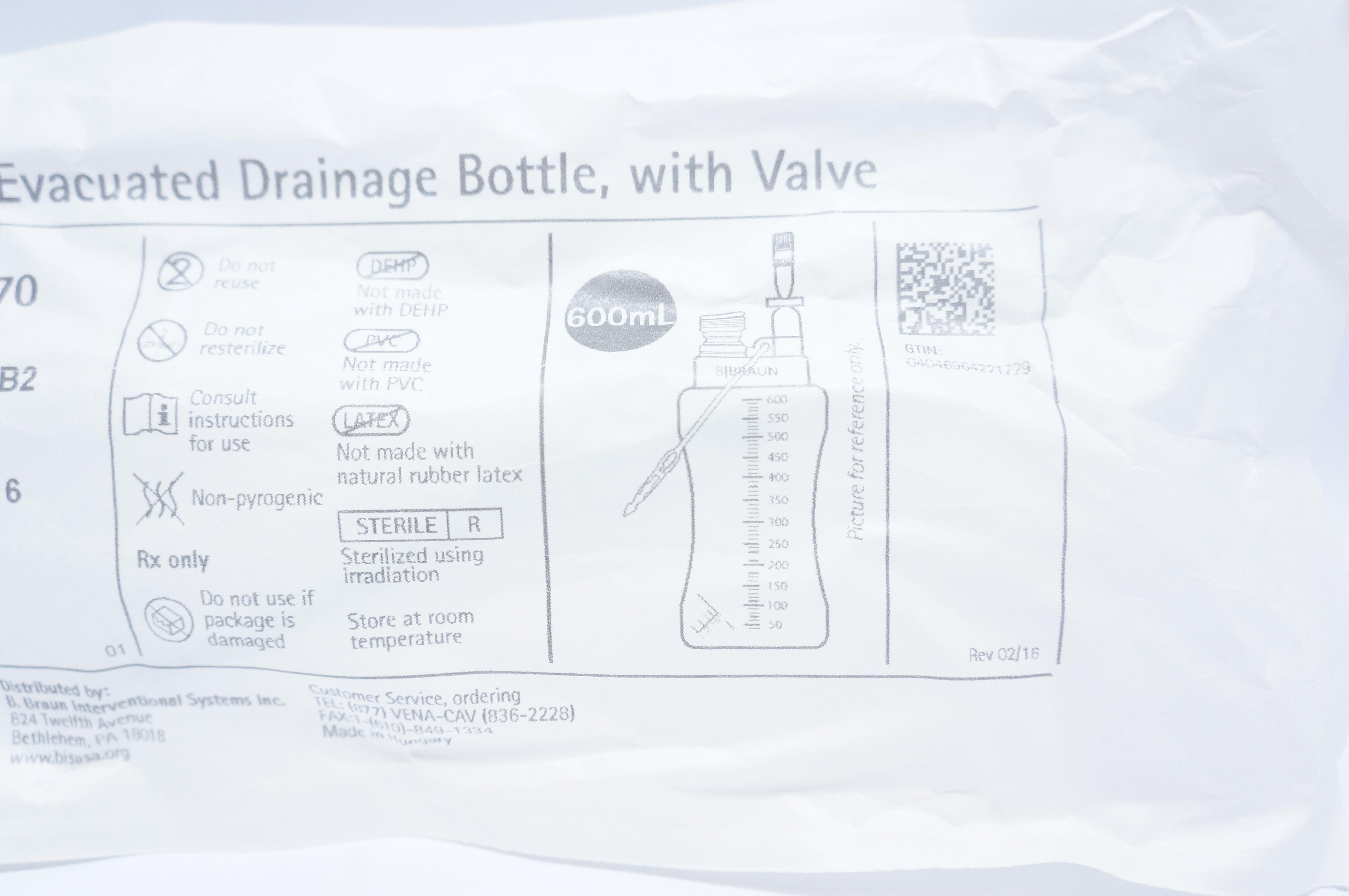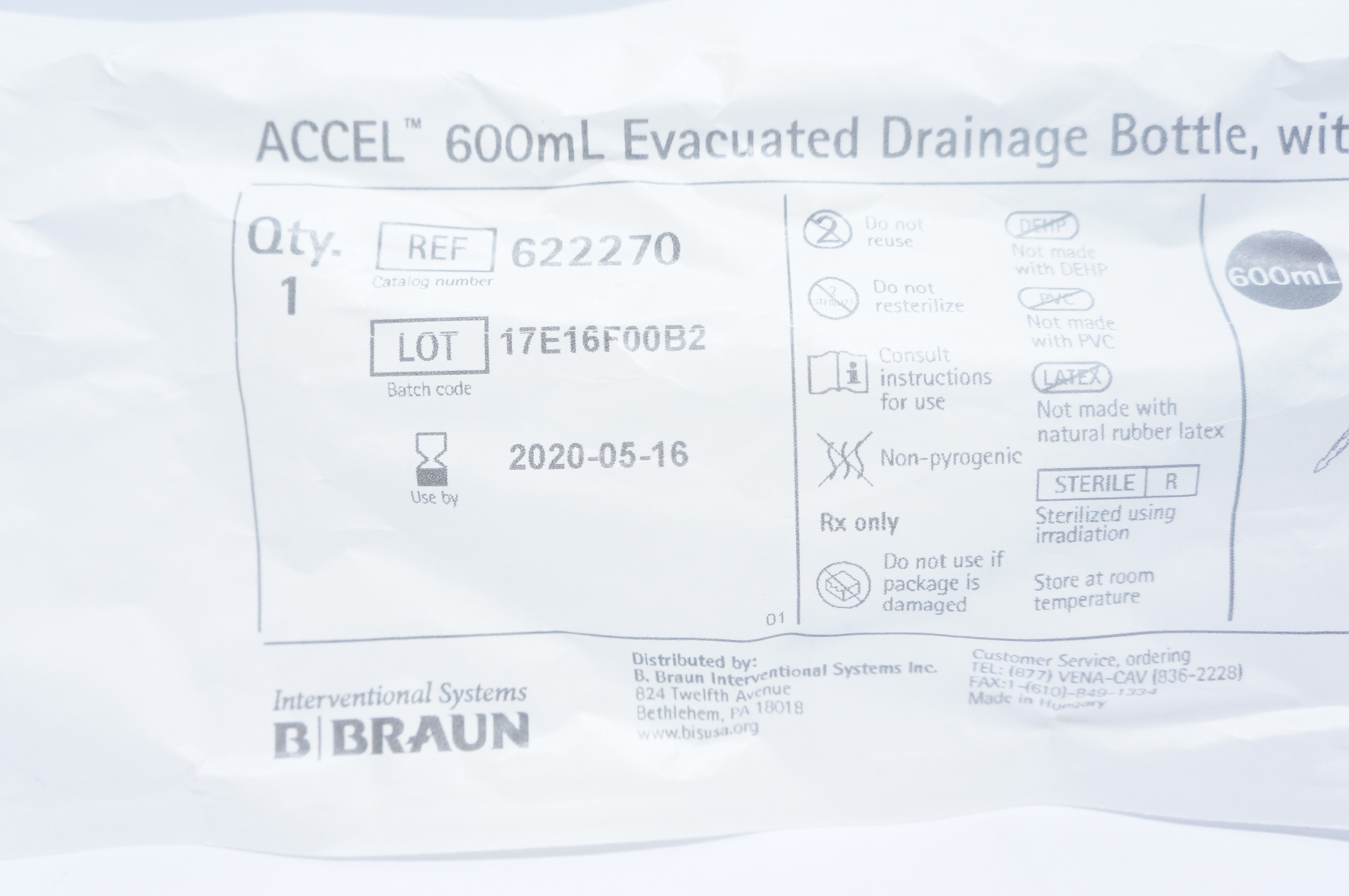 - Braun 622270 ACCEL Evacuated Drainage Bottle 600mL, with Valve (x)