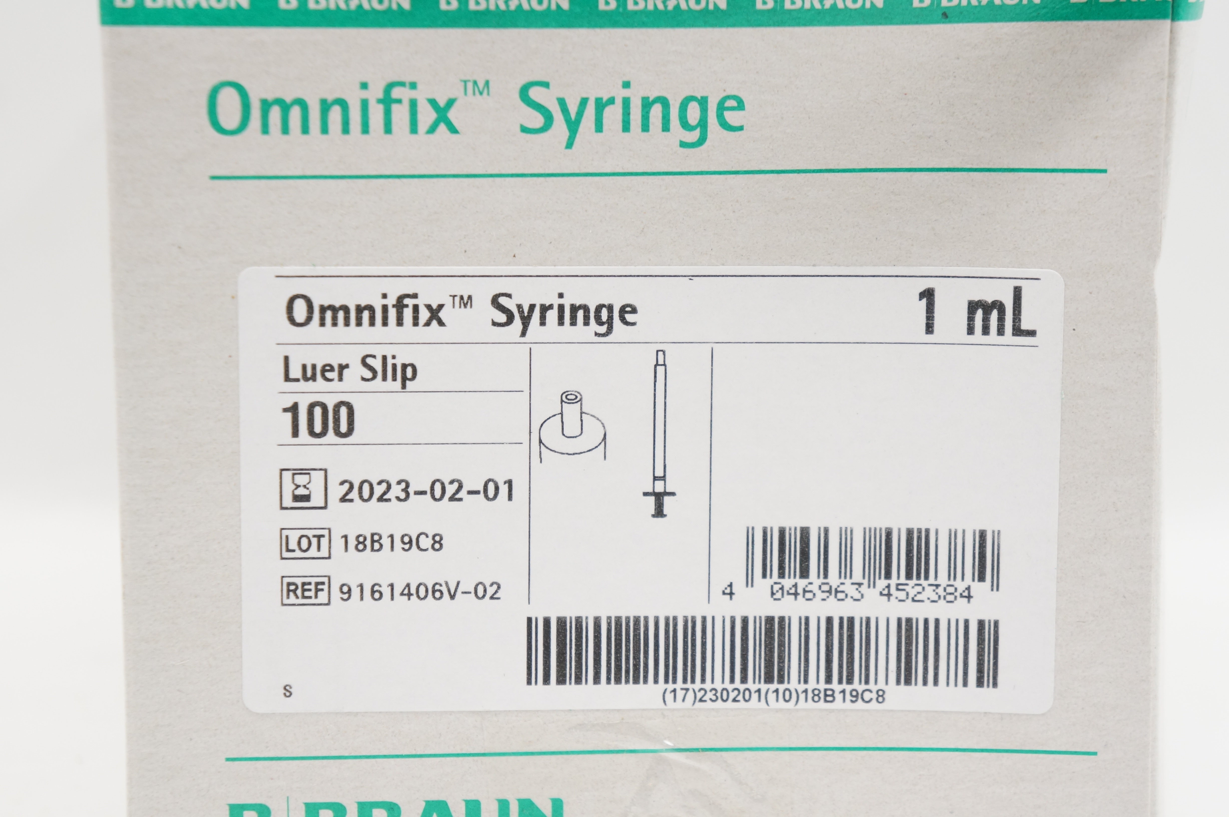 - Braun 9161406V-02 Omnifix Syringe, Luer Slip, 1mL - Box of 100