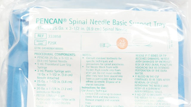Braun Medical 333858 Pencan Spinal Ndle Basic Support Tray 25Ga x 3-1/2inch