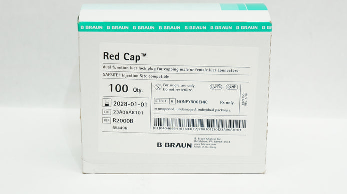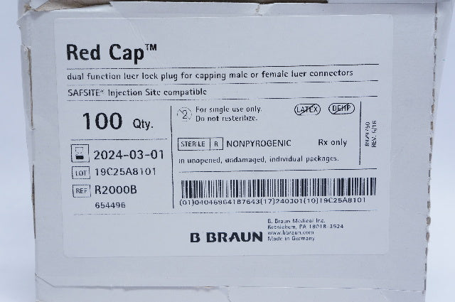 - Braun R2000B Red Cap Dual Function Luer Lock Plug - Box of 100