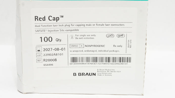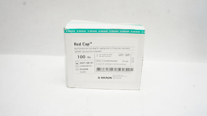- Braun R2000B Red Cap Dual Function Luer Lock Plug - Box of 100
