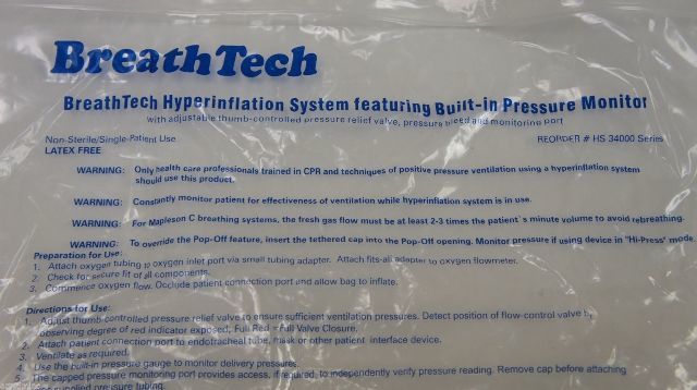 - BreathTech HS34031 Hyperinflation System Built-In Pres Monitor 3L ~ Lot of 19