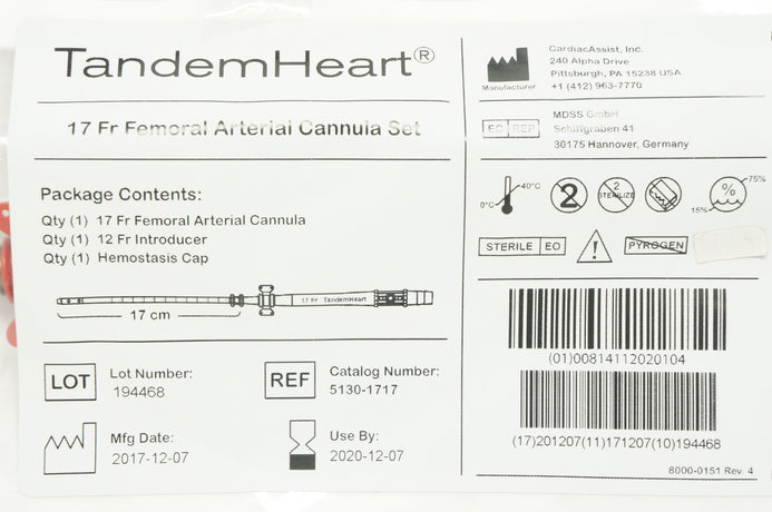 - CardiacAssist 5130-1717 TandemHeart Femoral Arterial Cannula Set 17Fr x 17cm (x)