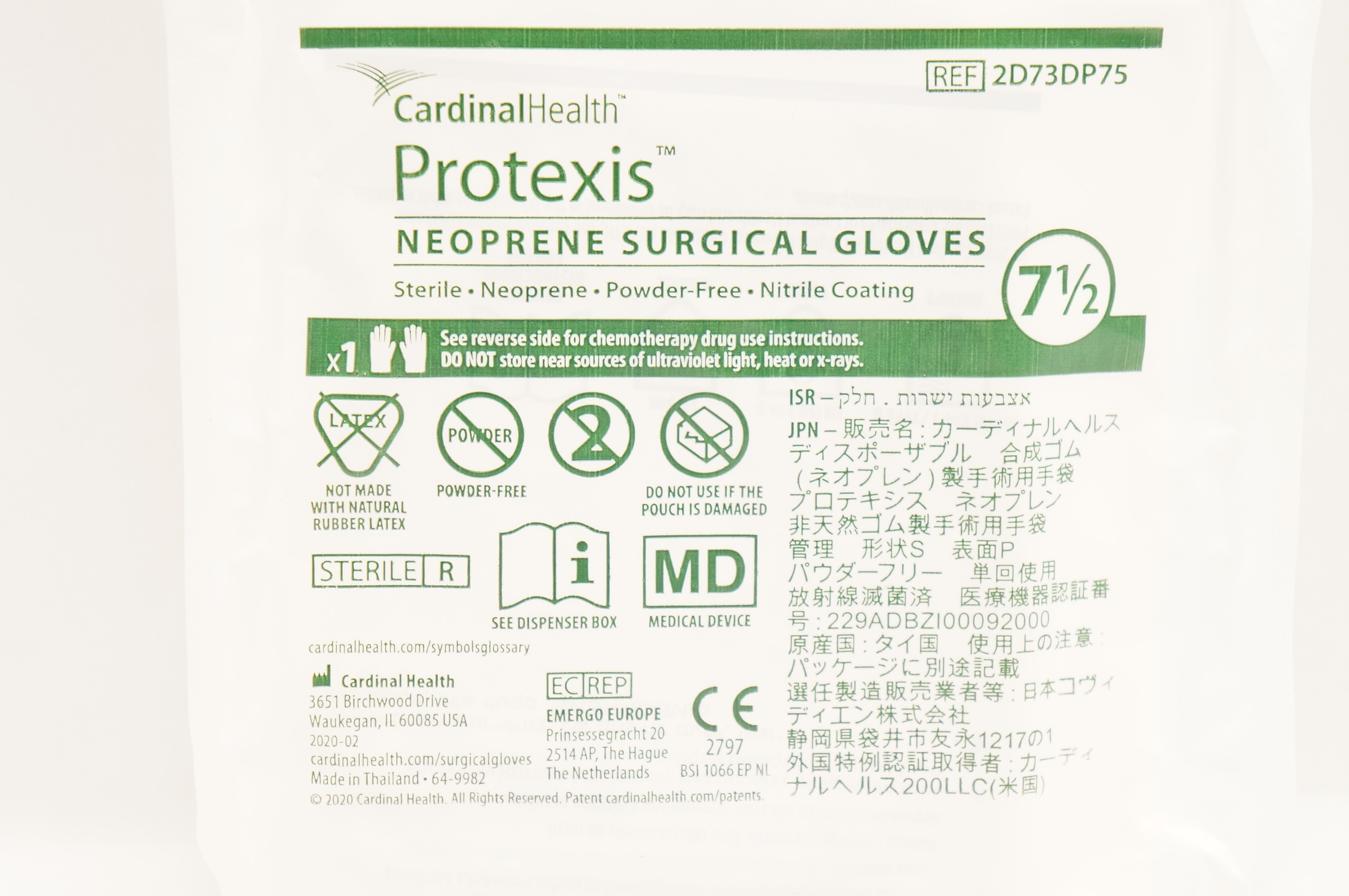 - Cardinal Health 2D73DP75 Protexis Neoprene Surgical Gloves Nitrile Coating 7-1/2