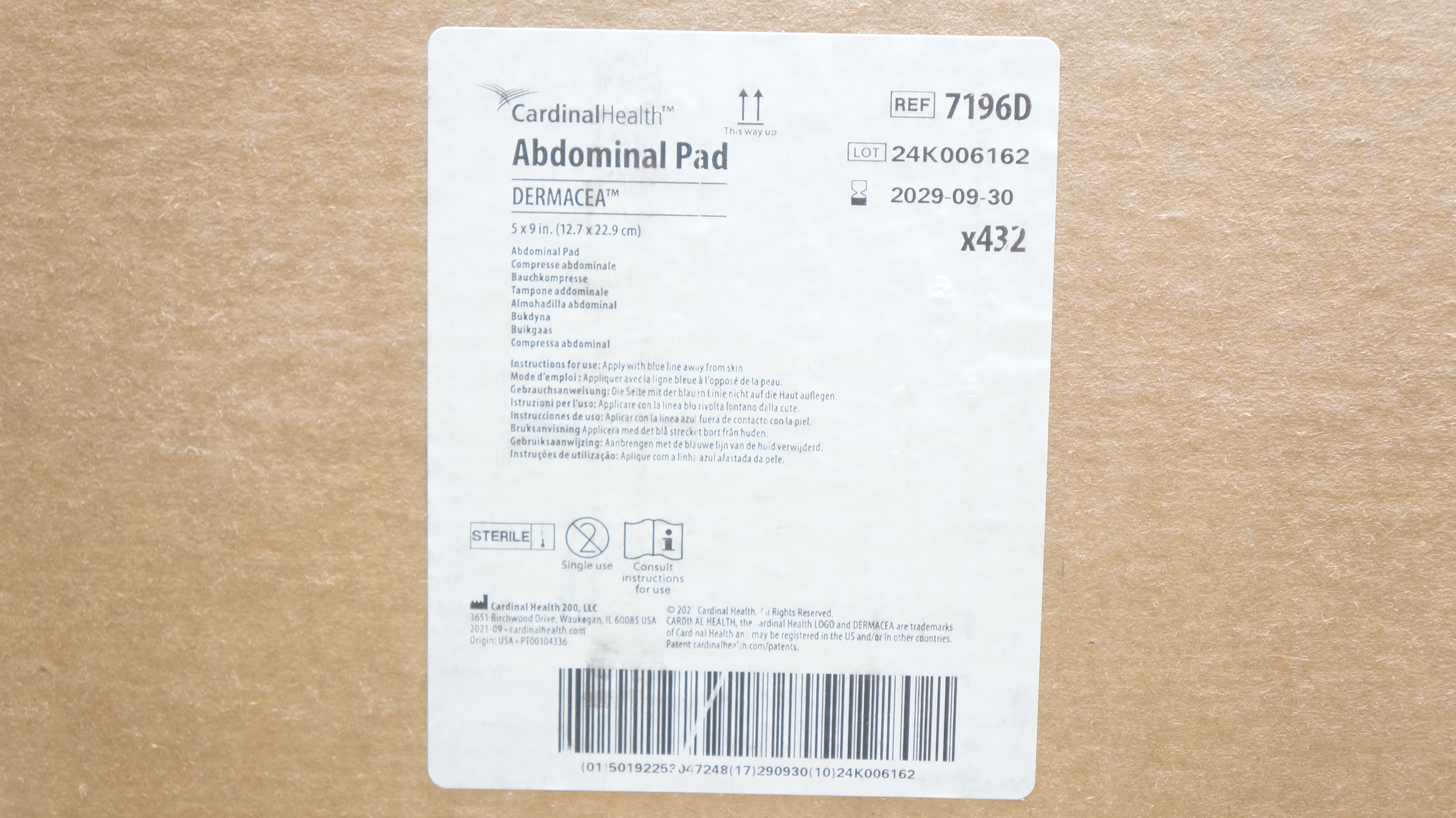 - Cardinal Health 7196D Dermacea Abdominal Pad 5 x 9inch - Case of 432