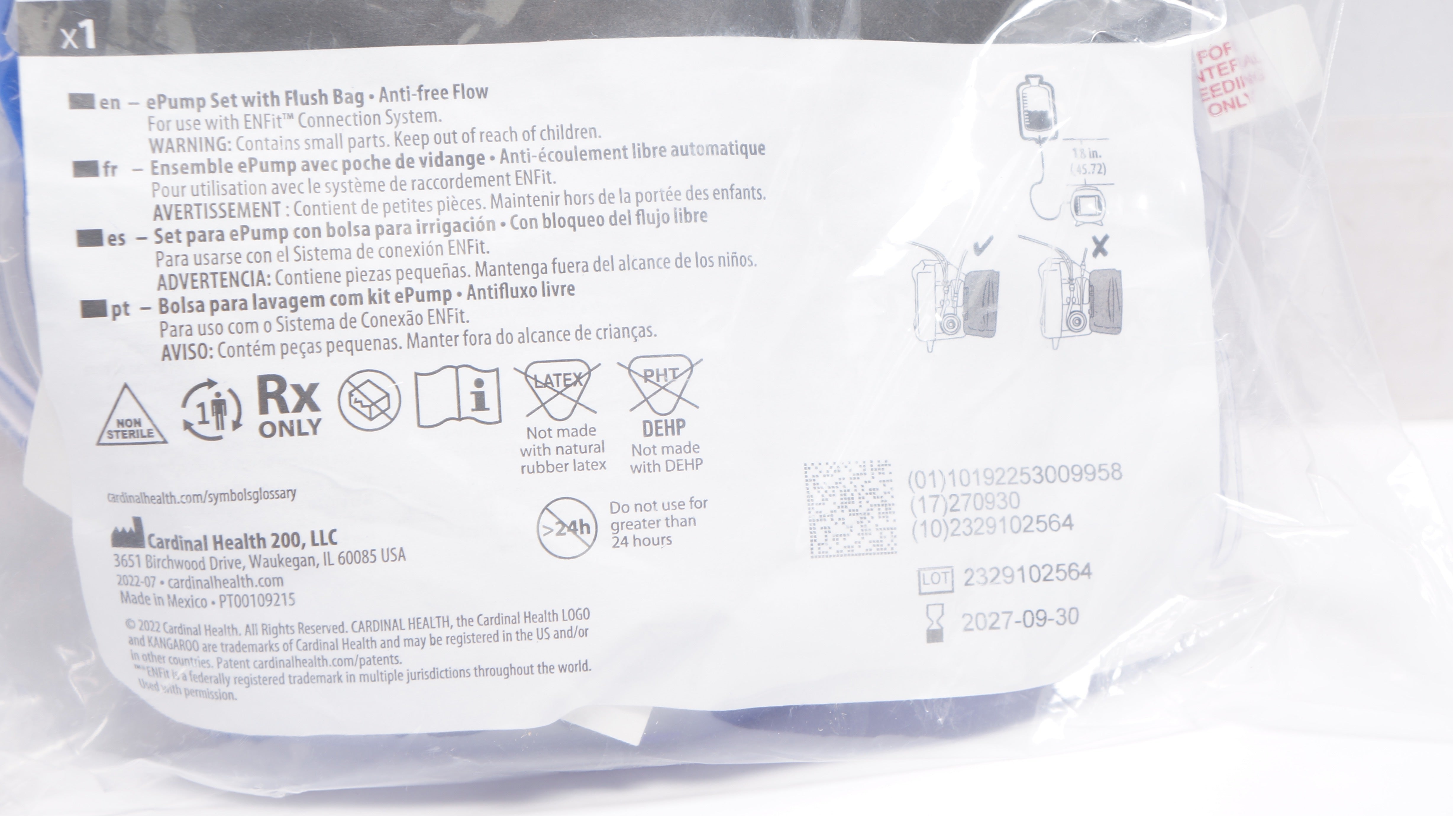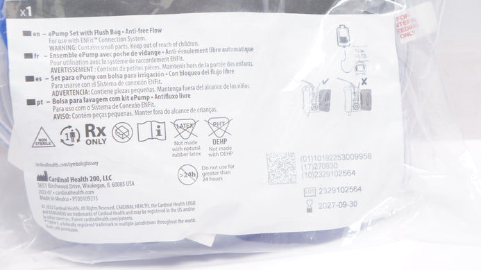 - Cardinal Health 773662 Kangaroo Epump Set with Flush Bag Anti-Free Flow 1000mL