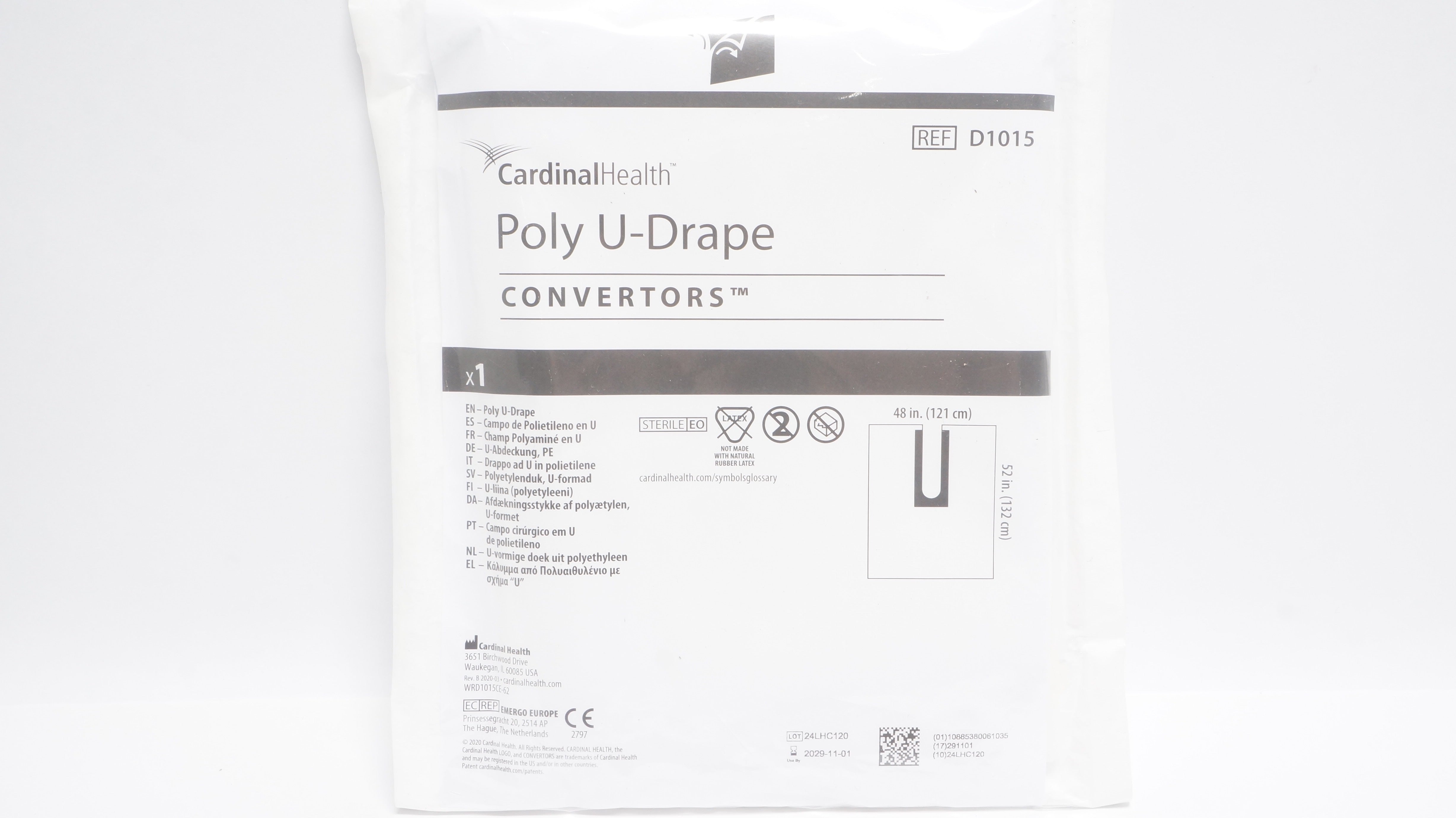 - Cardinal Health D1015 Convertors Poly U-Drape 48inch x 52inch