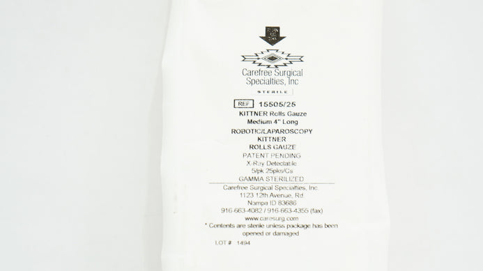 Carefree Surgical 15505/25 Kittner Rolls Gauze Medium 4inch Long Robotic/Laparoscopy Kittner Rolls Gauze Patient Pending X-Ray Detectable
