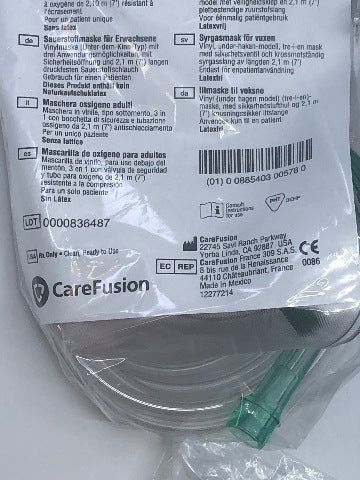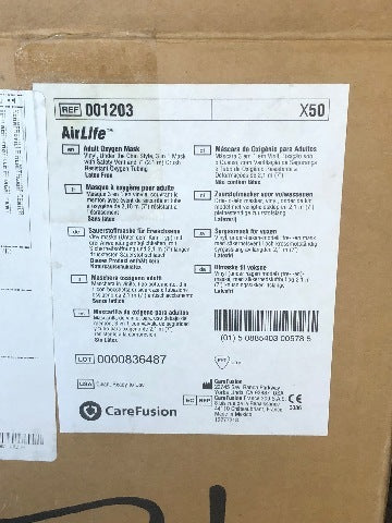 CareFusion 001203 Adult Oxygen Mask ~ Case of 50