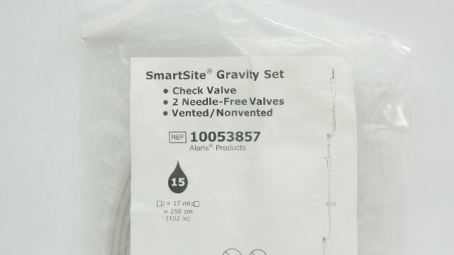 CareFusion 10053857 SmartSite Gravity Set Check Valve 2Needle-Free Valves Vented/Nonvented 15Drops 17ml x 102inch