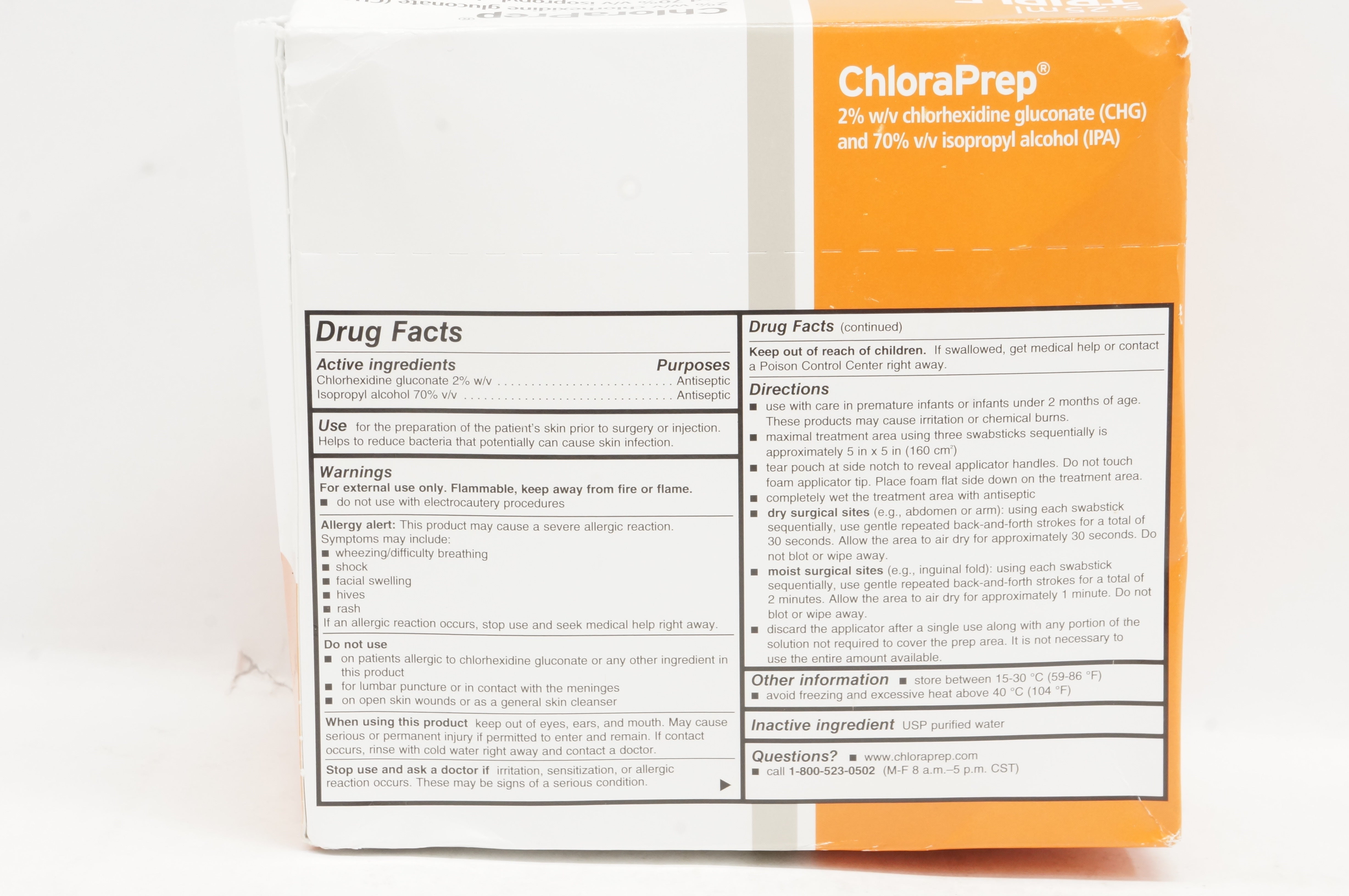 CareFusion 260103 ChloraPrep Triple Swabstick 5.25ml Applicators Clear-Box of 40