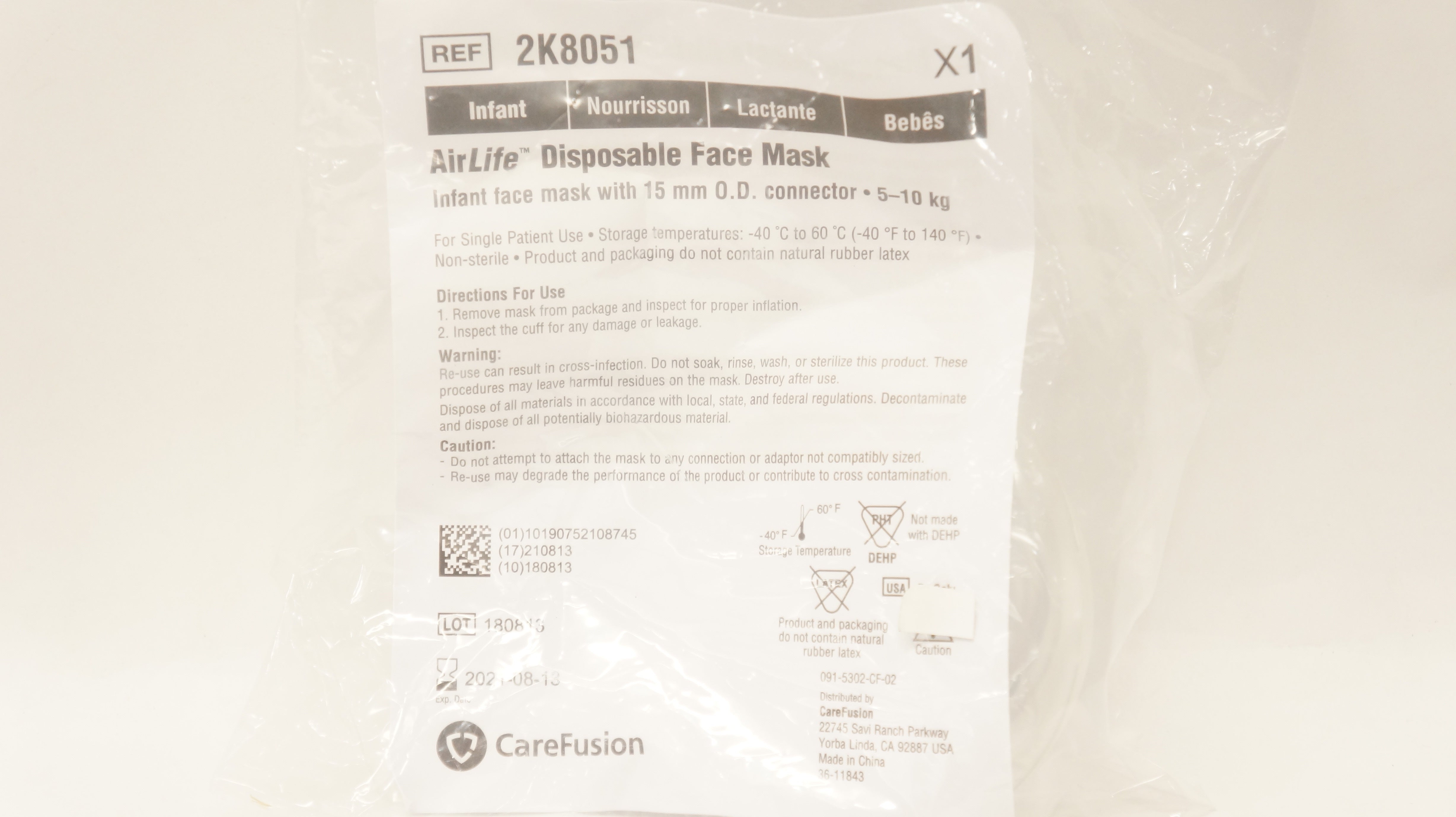 - CareFusion 2K8051 AirLife Disposable Infant Face Mask w/15mm OD Connector (x)