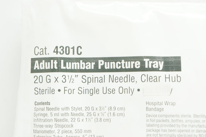 CareFusion 4301C Adult Lumbar Puncture Tray 20G x 3-1/2inch Spinal Needle