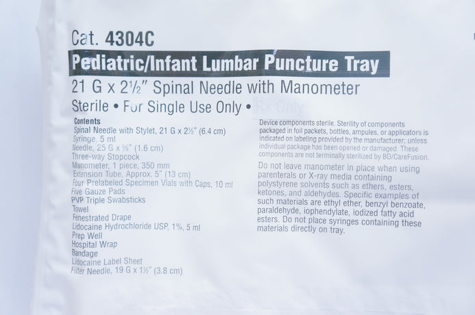 CareFusion 4304C Infant Lumbar Puncture Tray 21G x 2 1/2inch Spinal Ndle (x)