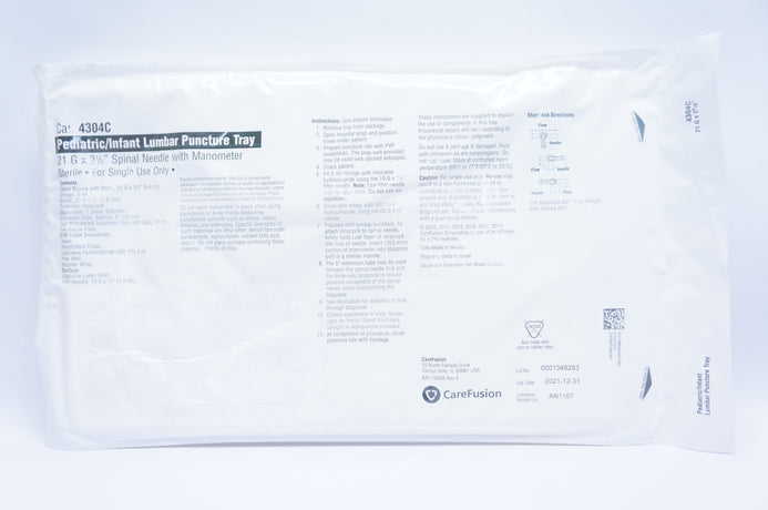 CareFusion 4304C Pediatric/Infant Lumbar Puncture Tray 21G x 2 1/2inch Spinal Needle with Manometer