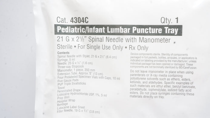 CareFusion 4304C Pediatric/Infant Lumbar Puncture Tray 21G x 2-1/2inch (x)