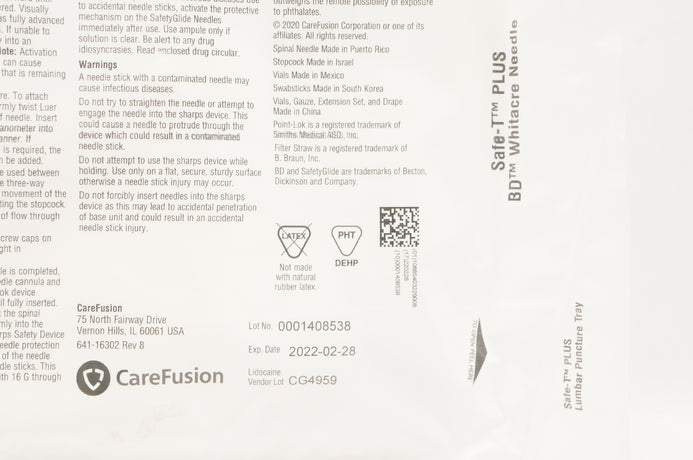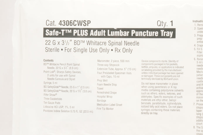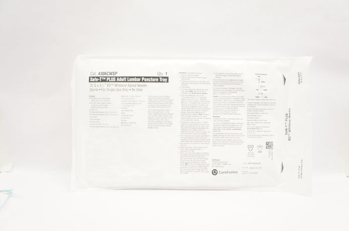 CareFusion 4306CWSP Safe-T Plus Adult Lumbar Puncture Tray 22G x 3-1/2inch (x)