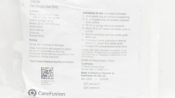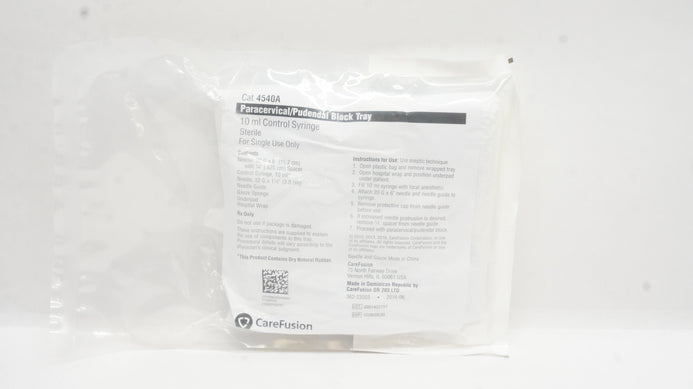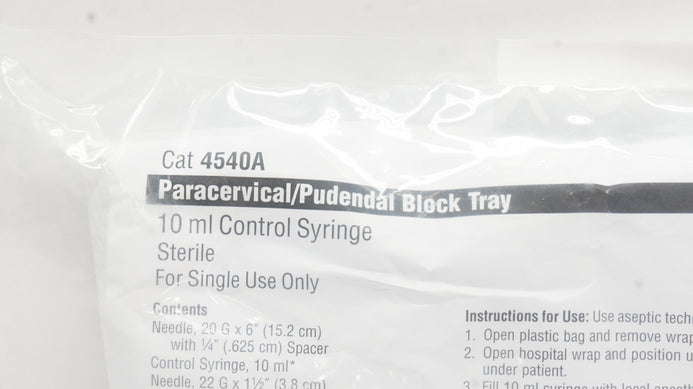 - CareFusion 4540A Paracervical/Pudendal Block Tray, Control Syringe 10mL