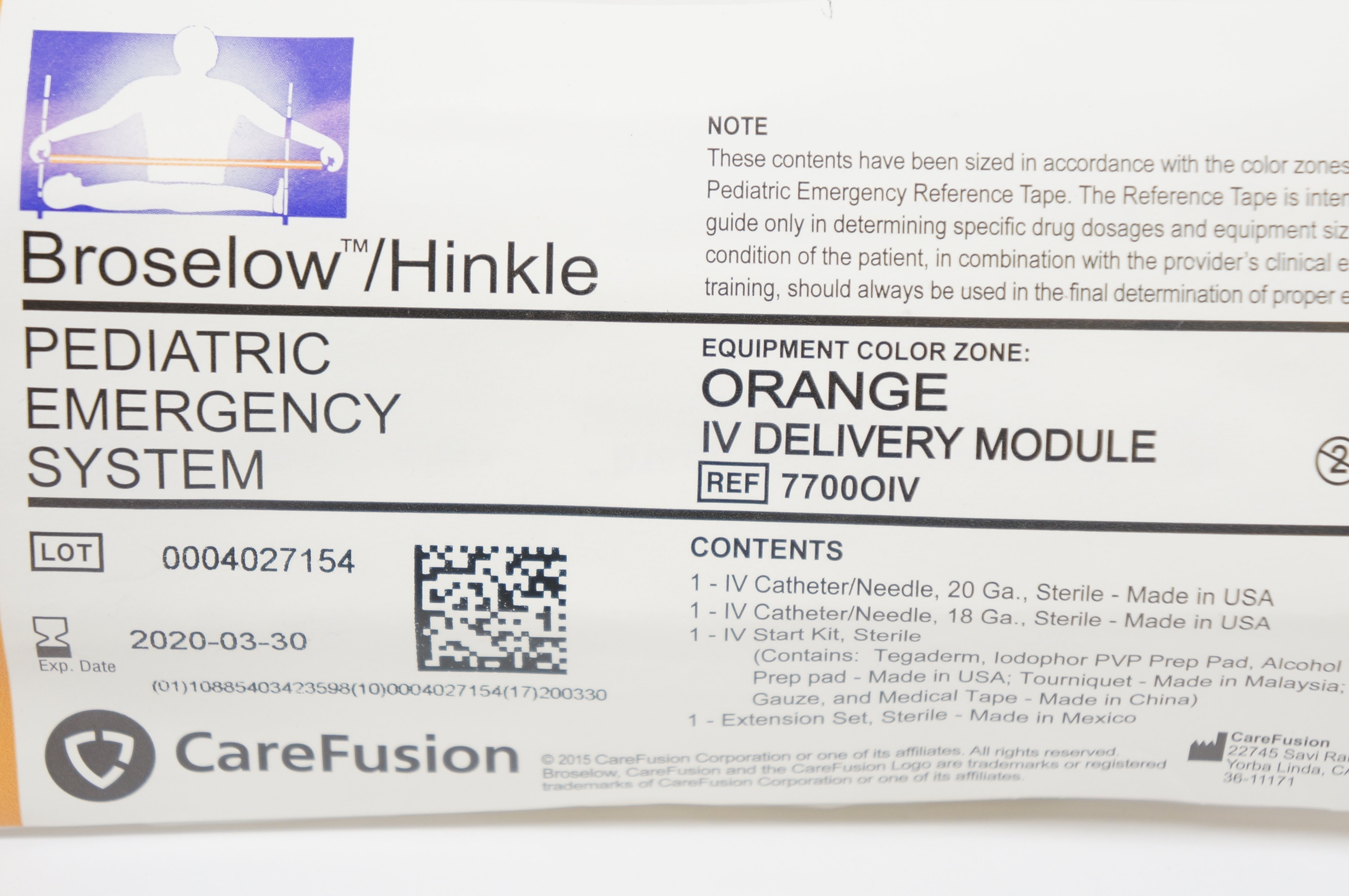 - CareFusion 7700OIV Pediatric Emergency System Orange IV Delivery Module (x)
