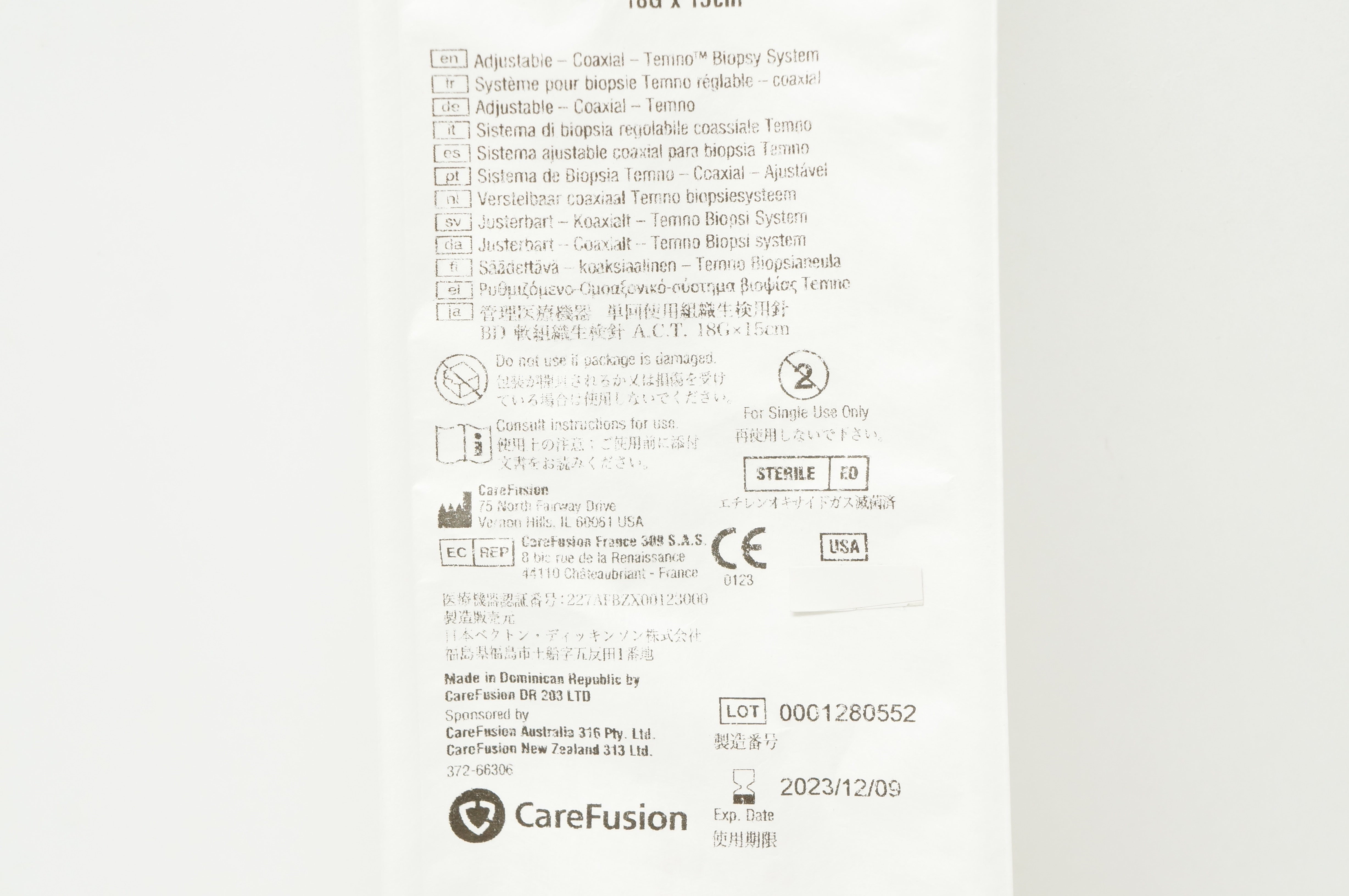 CareFusion ACT1815 Adjustable Coaxial Temno Biopsy System 18G x 15cm