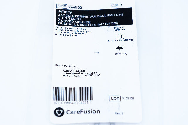 - Carefusion GA952 Jacob Uterine Vulsellum Forceps 2x2 Teeth, Length 8-1/4inch