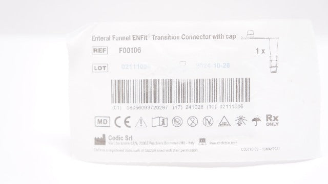 - Cedic Srl F00106 Enteral Funnel ENFit Transition Connector With Cap