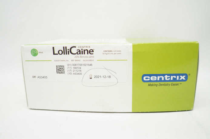 Centrix 360092 Lollicaine Topical Anesthetic Gel Mint - Box of 120