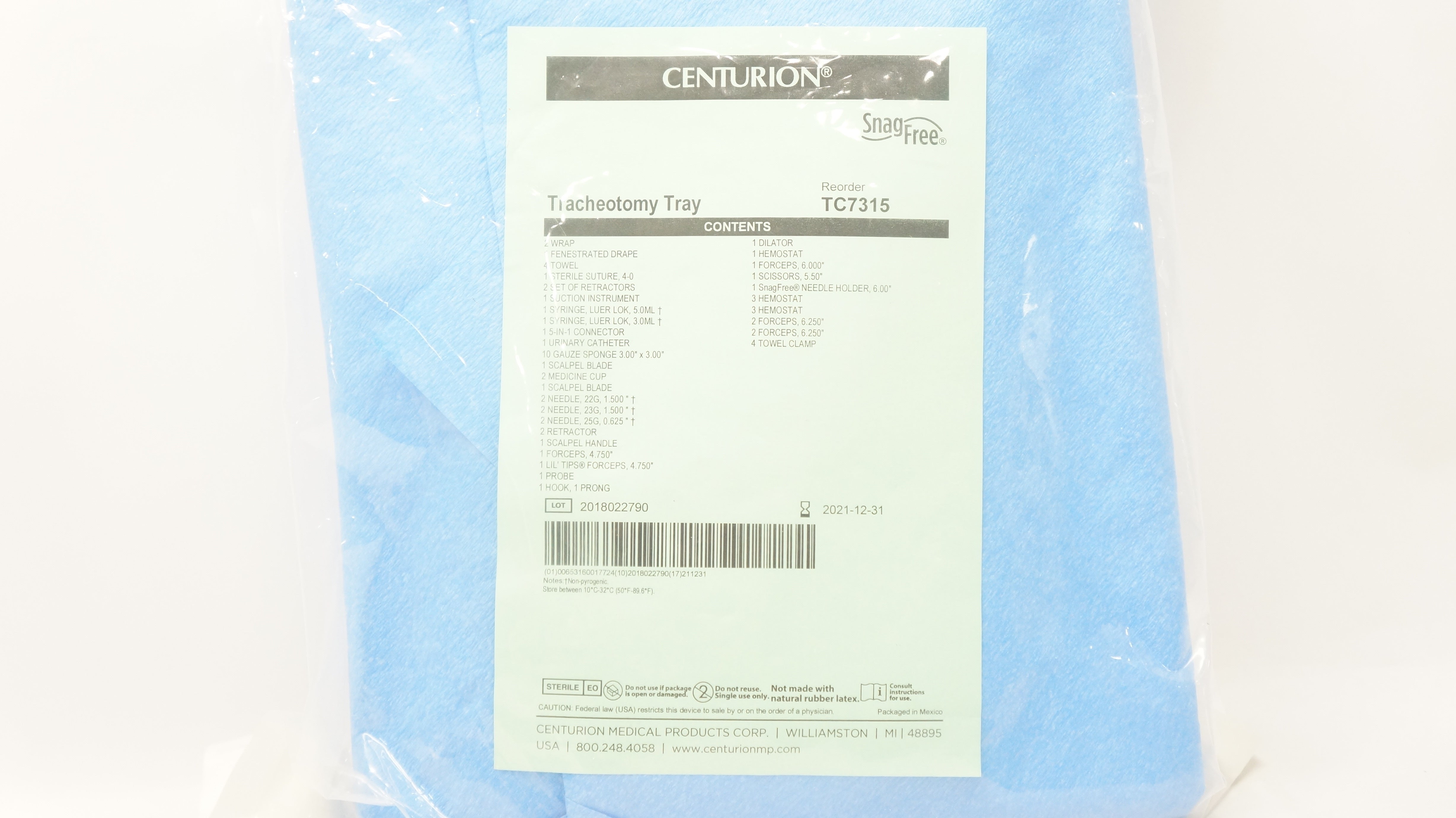 - Centurion TC7315 SnagFree Tracheotomy Tray