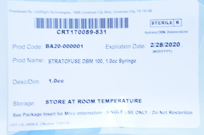 - ChoiceSpine BA20-000001 Stratofuse DBM 100, 1.0cc Syringe (x)