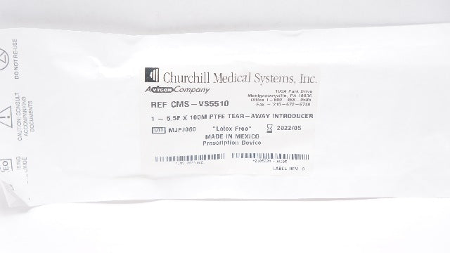 - Churchill Medical CMS-VS5510 Vygon PTFE Tear-Away Introducer 5.5F x 10cm (x)