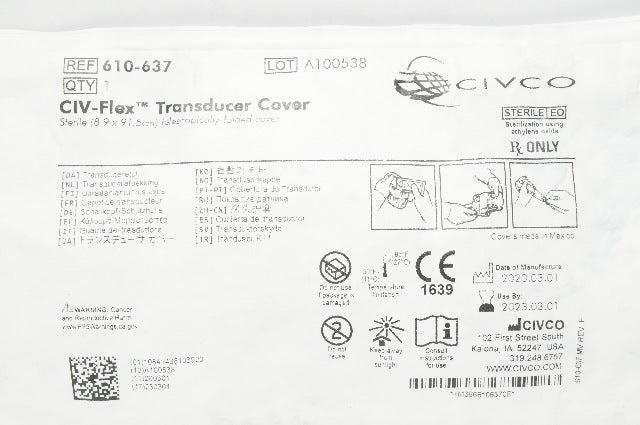 - Civco 610-637 CIV-Flex Transducer Cover Sterile 8.9 x 91.5 cm