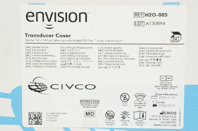 Civco H2O-005 Envision Transducer Cover Sterile 14 x 147cm Telescopically-Folded CIV-Flex Cover with Envision