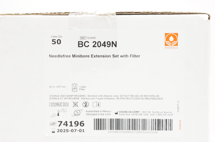 - Codan 72.8101 Needlefree Minibore Extension Set with Filter - Box of 50