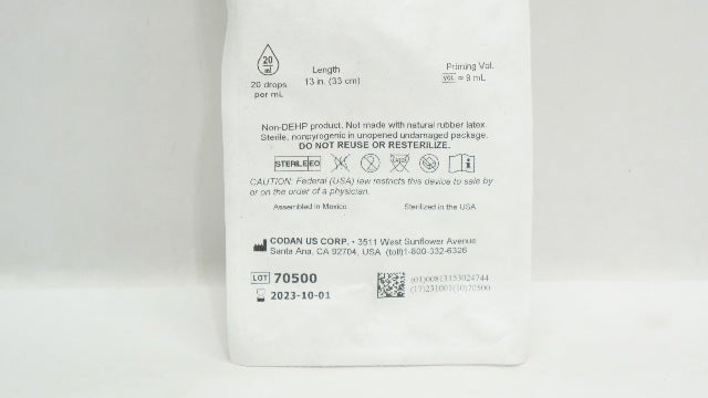 - Codan 76.8183 B496-W Dual Chamber Infusion Set 13inch x 9mL 20 Drops/mL